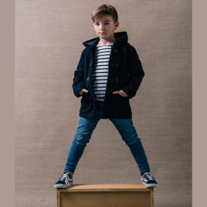 Chaquetón de paño con capucha y con cierre cremallera y botónes de cuernos